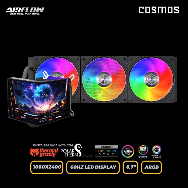 Refrigeración Líquida COSMOS CryoVision 777 Black 360mm con Pantalla AMOLED 2K